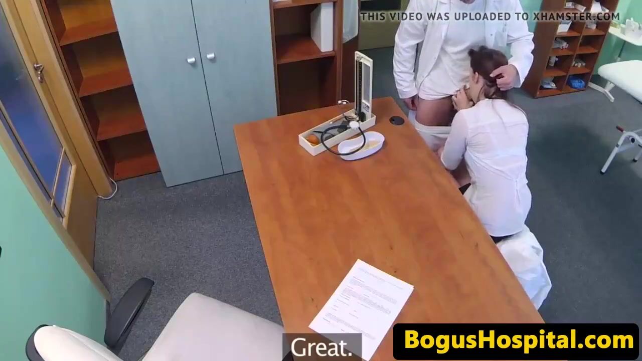 Nurse sucks doctors dick before pussy fucking doggystyle