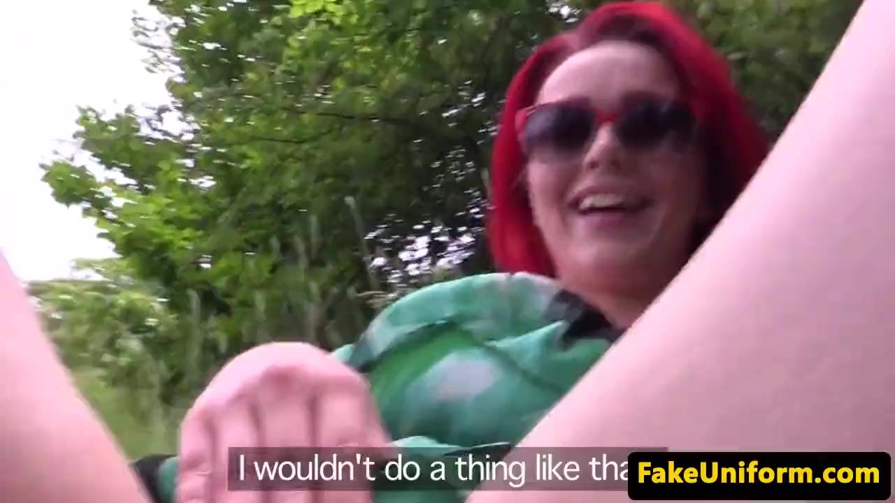 Pussylicked redhead Brit cockrides officer outfoors POV