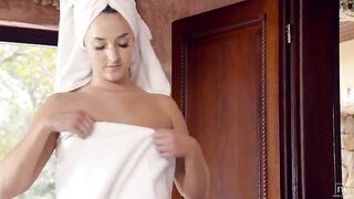 Cum hungry European Amira Adara is ready to prepare herself for seduction. She goes upstairs in her short robe and steps beneath the shower so she can clean her big nipple breasts, firm ass, and meaty bald pussy. When she's done washing off, she wraps herself in a towel and moves on to the bedroom where she has already laid out sheer thigh highs and matching black lingerie with a bra, garter belt, and thong.She's ready just in time for Matt Denae to arrive at her door. He gives her a double take as he lets her know that she looks incredible, but that's the only thing he has time for before Amira leads him to the couch. Climbing on top of Matt, Amira rubs her thong-clad twat up and down his hard dick while he relieves her of her bra so he can drop openmouthed kisses on her breasts and hard nips.Sliding back and relieving Matt of his clothes, Amira opens her mouth to wrap around the head of his cock. Her favorite treat is easy to enjoy as she sucks and licks. Stroking Matt's shaft, she puts her hand to work increasing her lover's delight.When Matt turns the tables on Amira and presses her backwards onto the couch, she is eager to spread her thighs for him. He settles between Amira's thighs, rubbing her clit with his thumb as he uses his tongue to drive her wild. Reaching down to squeeze her own firm breast, Amira watches Matt bring her to brand new levels of pleasure as he shifts position and settles his cock in her creamy twat. Curling up behind Amira, Matt spoons her while continuing to satisfy her lusty wants.When Amira climbs on top of Matt and starts riding his stiffie, he reaches down to grab that ass and squeeze the cheeks. She bounces her booty with each stroke, letting her whole body jiggle in all the right places. She keeps upping the speed until her wild ride is at full tilt for orgasmic results.Getting on her hands and knees for a doggy style pussy pounding, Amira moans in bliss as Matt slams into her from behind. He is soon delivering a ball slapping fuck that brings Amira off again. When she rolls Matt over so she can once again climb aboard his fuck stick, he's happy to oblige. This time, she reaches down to her clit for one last climax that milks Matt of the last of his control. He explodes while buried inside Amira, giving her the creampie she craves to leave her totally satisfied.