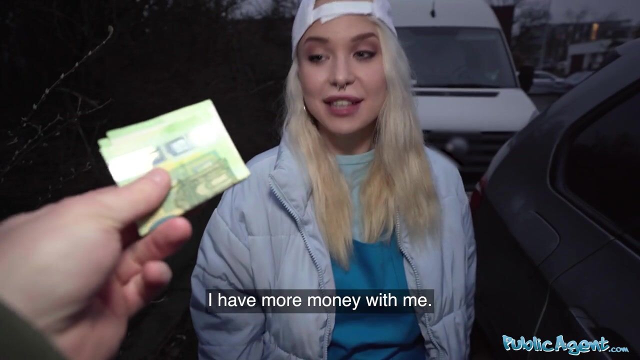 Public Sex Blonde Pizza Delivery girl with BIG NATURAL BOOBS gets her wet pussy filled