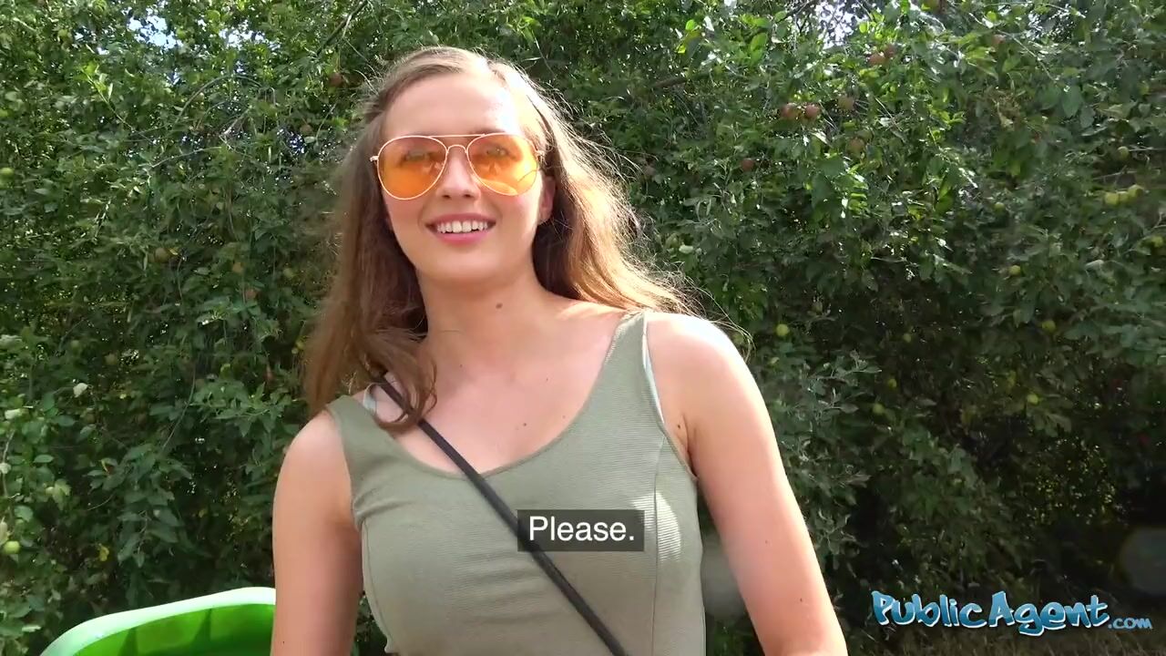 Public Sex - 19yr old with perfect natural tits sucks cock outside and lets agent fuck her pussy