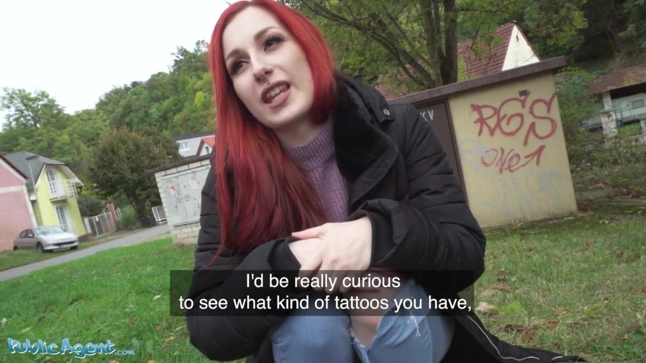 Public Sex Redhead Brit Shows Off Her Pierced Tits Before Basement Fuck Creampie