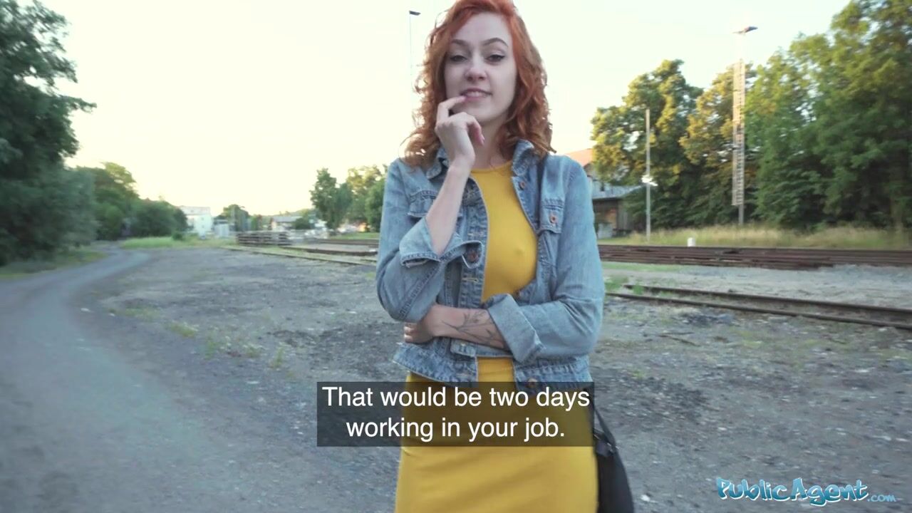 Public Sex Sexy redhead waitress sucks cock and gets fucked doggystyle outside in public