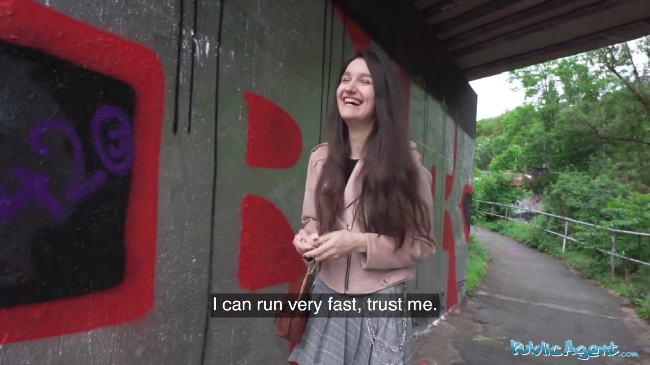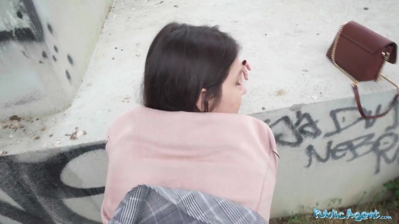 Public Sex - very cute college Teen art student with natural tits studies a big dick outdoors